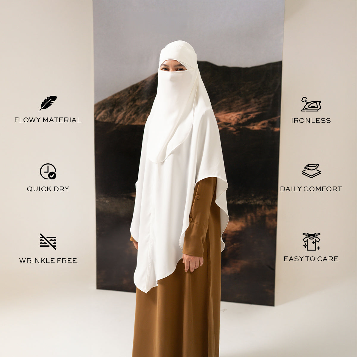 Gerai Hawa - Shayma Abaya Full Furing Set French Khimar 2 Layer Syar’i Haji & Umroh Daily, Polos, Gamis Busui & Wudhu Friendly - Metamorfosa Collection