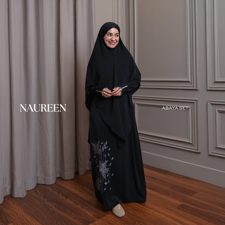 Gerai Hawa - Best Seller Naureen Abaya Set - Monochrome Bloom - Madah Samudra - Eid Collection