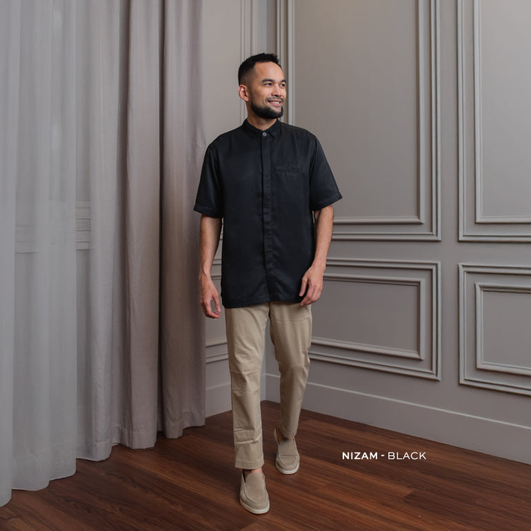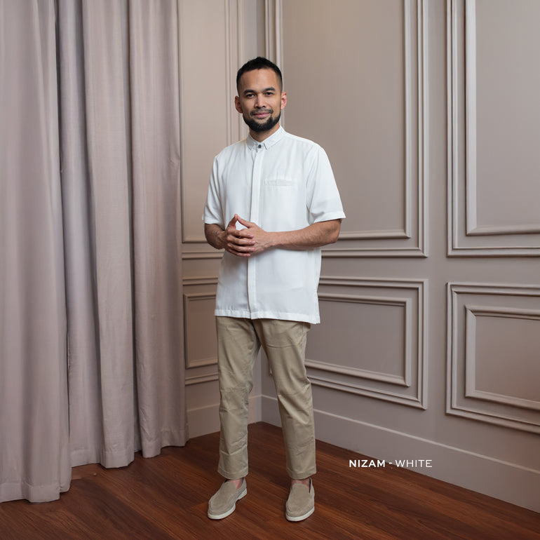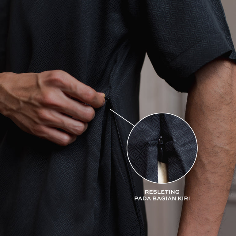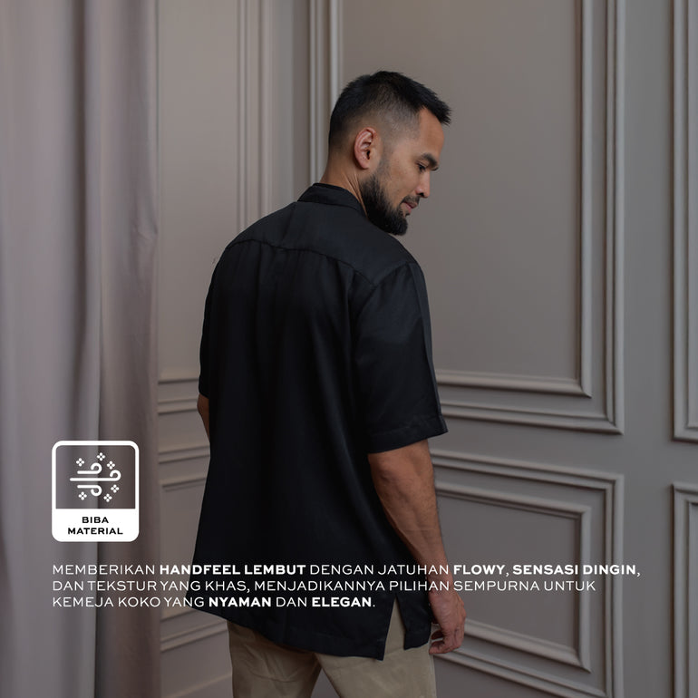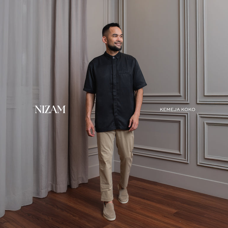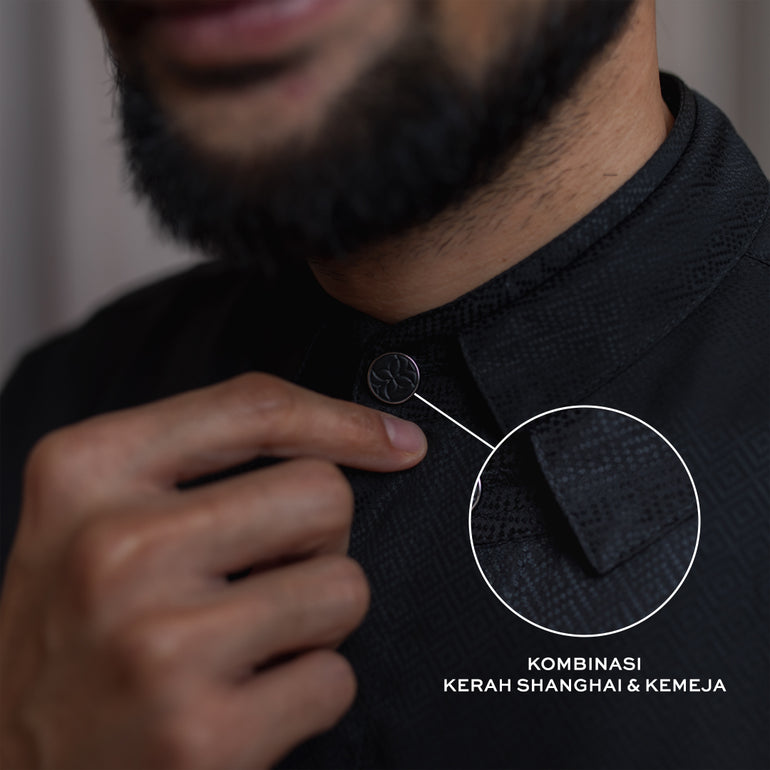 Gerai Hawa - Nizam Kemeja Koko Pria Lengan Panjang Premium - Monochrome Bloom - Madah Samudra - Eid Collection