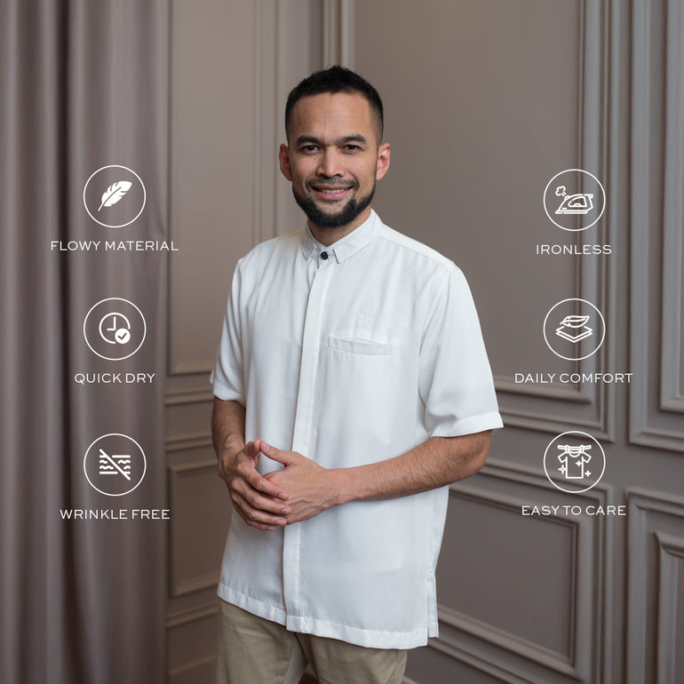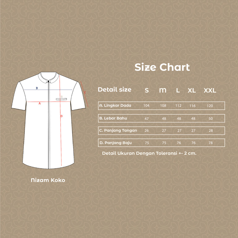 Kemeja koko lengan pendek kerah shanghai kombinasi tempelan kerah kemeja. Terdapat kancing logo GH dibagian kerah atasnya. Di bagian depan terdapat bukaan kancing dalam, dan di sebelah kiri terdapat resleting jepang sebagai bukaan untuk membantu perut yang agk membesar. Bagian belakang ada cutting punggung. Terdapat kantong bobok dan logo bordir Gerai Hawa. Koko ini cocok untuk acara formal dan non formal.