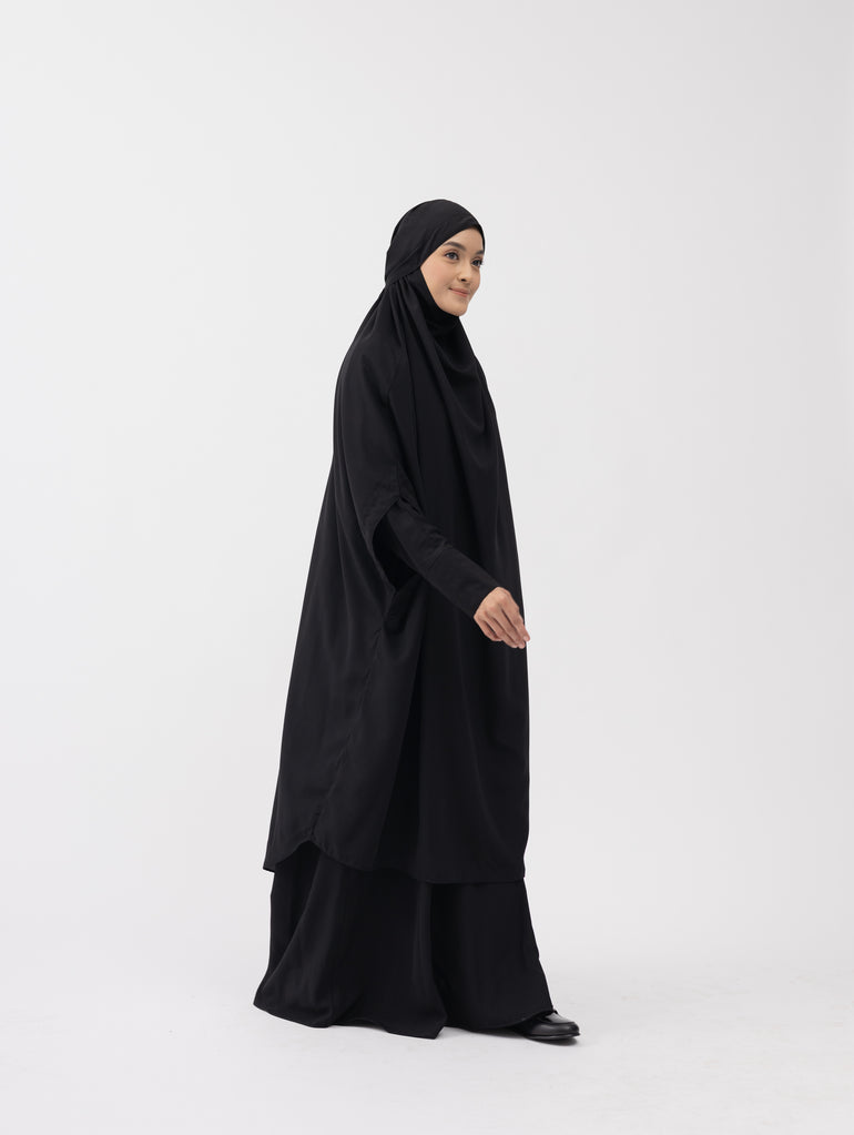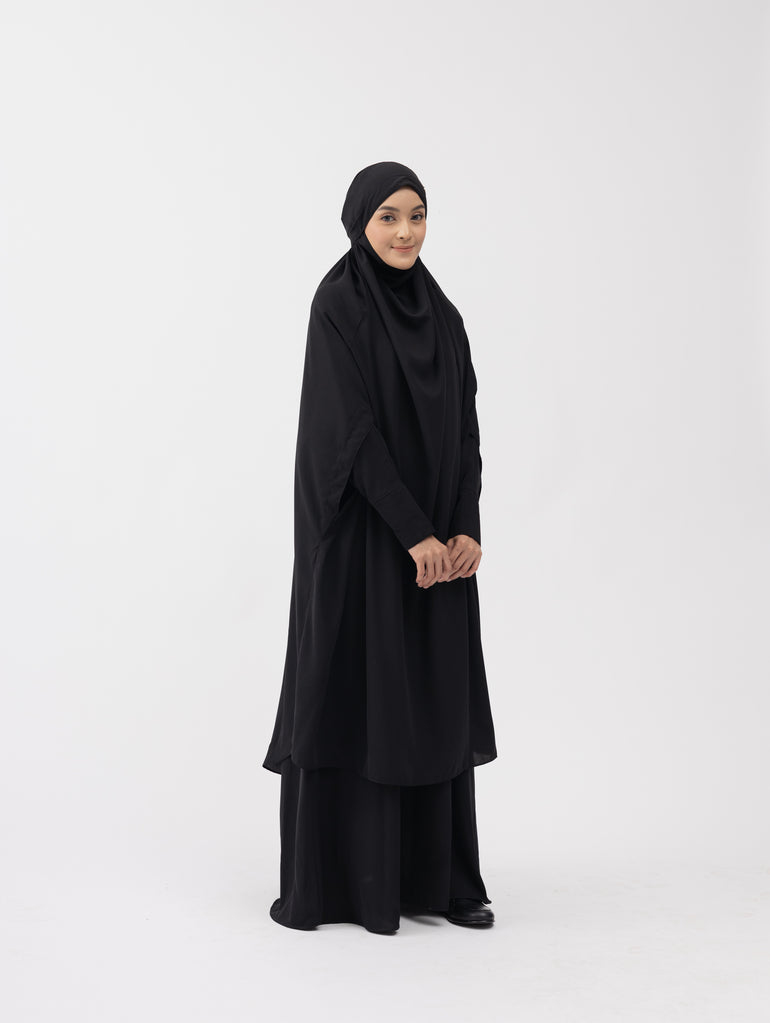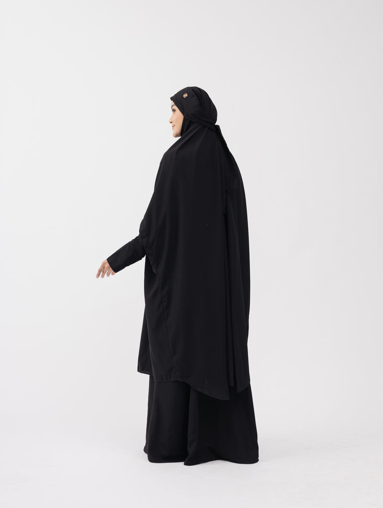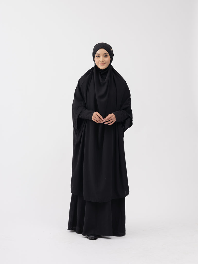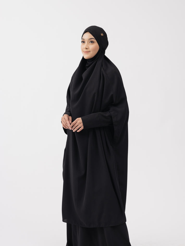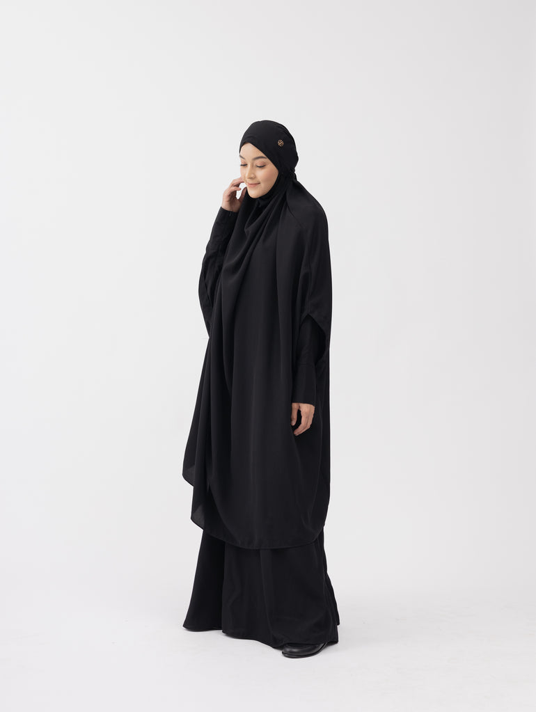 Gerai Hawa - Zaima Black French Khimar Set Gamis One Set Syar'i - Metamorfosa