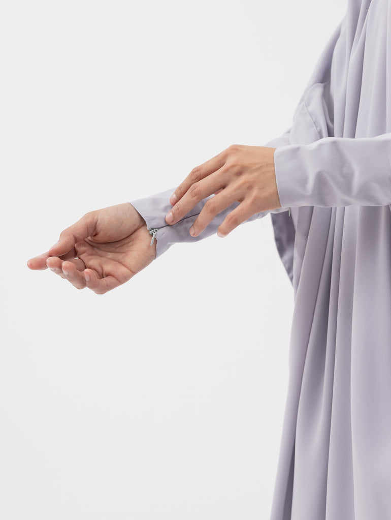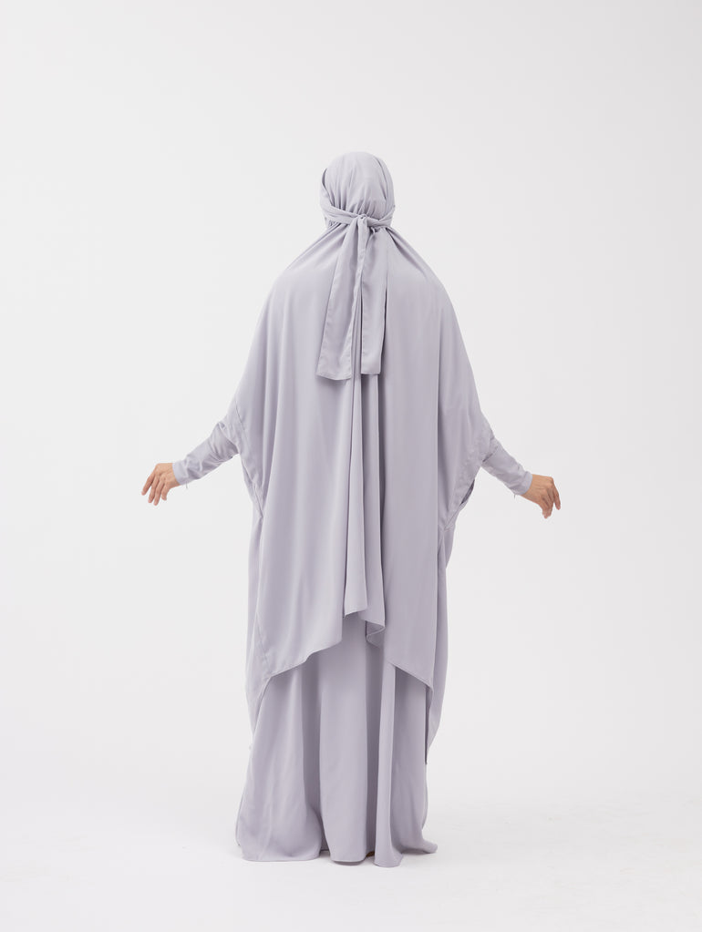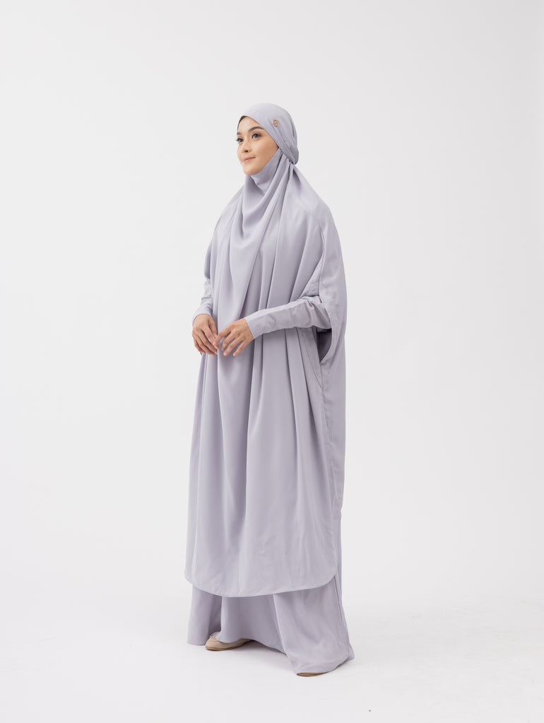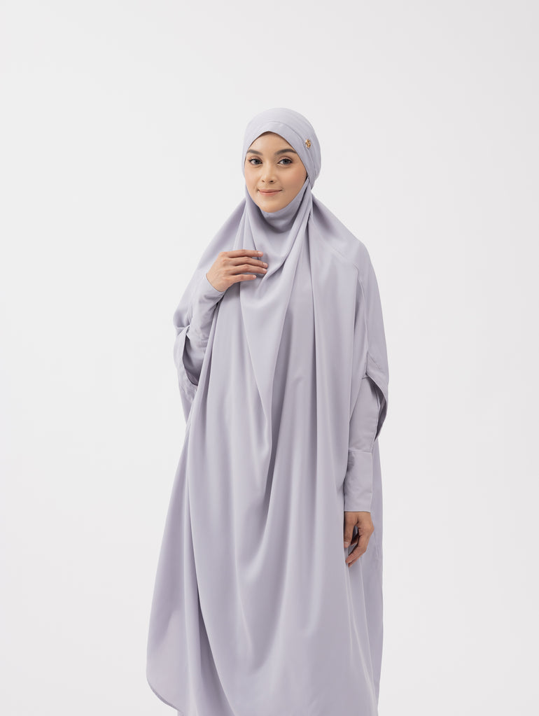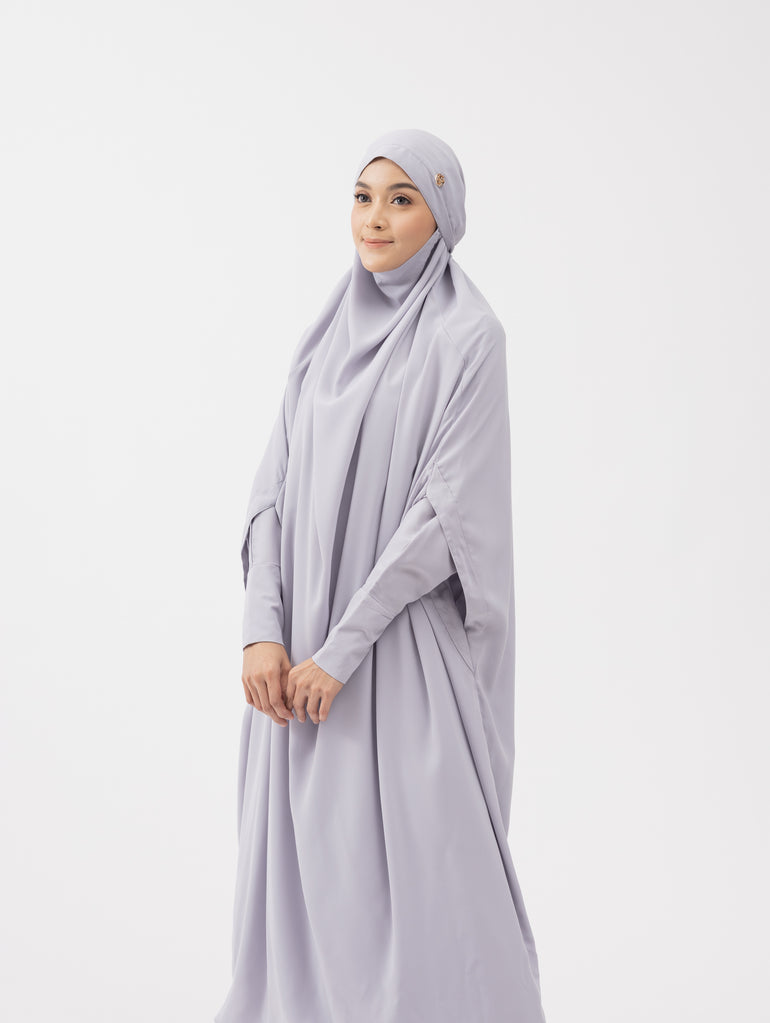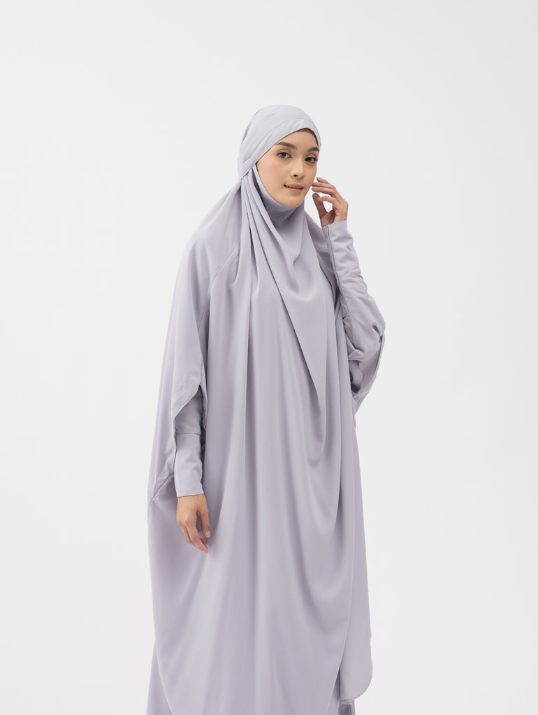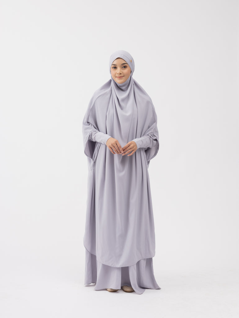 Gerai Hawa - Zaima Light Grey French Khimar Set Gamis One Set Syar'i - Metamorfosa